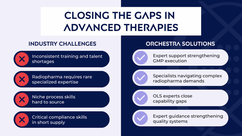 This shortage is felt most acutely in disciplines where training demands are steep and timelines are unforgiving across nuclear medicine, cell and gene therapies. The talent gap impacts every operational layer including: